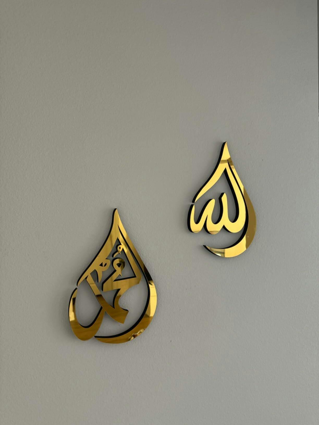 Allah Muhammad Islamic Wall Art – Wooden & Acrylic Drop Design